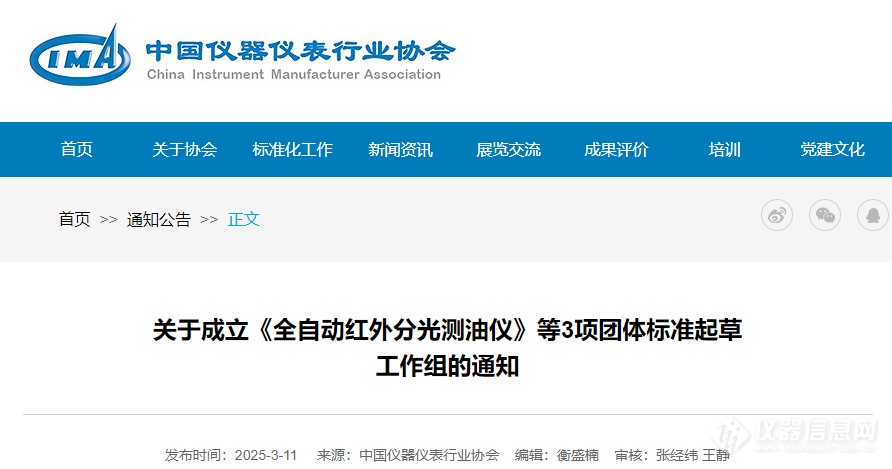 依据《关于〈全自动红外分光测油仪〉等3项集体规范立项的批复》(中仪协〔2025〕3号),《全自动红外分光测油仪》《全自动紫外分光测油仪》《依据水-气分离法的水中溶解气体检测仪技能规范》现已列入我国仪器仪表行业协会的集体规范制定计划。该3项集体规范由我国仪器仪表行业协会归口办理,分别由吉林大学吉林省光谱分析仪器工程技能研究中心和我国科学院大连化学物理研究所牵头起草。现搜集参与规范起草单位,并建立规范起草工作组,请贵单位指使1名有关技能人员参与,并按附件填写报名表,于2025年4月10日前将盖章后的扫描件反应至我国仪器仪表行业协会秘书处。(联系人:闫海荣,手机:,电子邮箱: