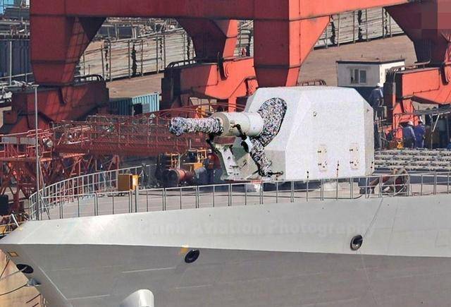 美军电磁炮还没有完成小型化,上舰的电能问题也没解决,图为055上电磁炮试验图