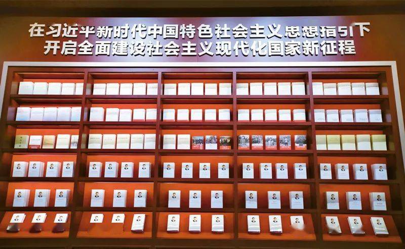 图为中国历史展览馆展出的习的部分重要著作以及学习阐释习新时代中国特色社会主义思想的部分重点图书。刘新武/摄