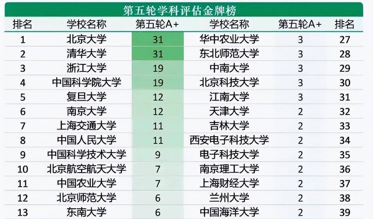 获得全国第三名的是浙江大学,坐落浙江省杭州市,共具有19个A+学科;第四名是我国科学院大学,坐落北京市,简称国科大,全国体现最超卓的双一流建造高校,共具有19个A+学科;第五名是复旦大学,坐落魔都上海市,在第五轮学科评价中,共有12个A+学科。
