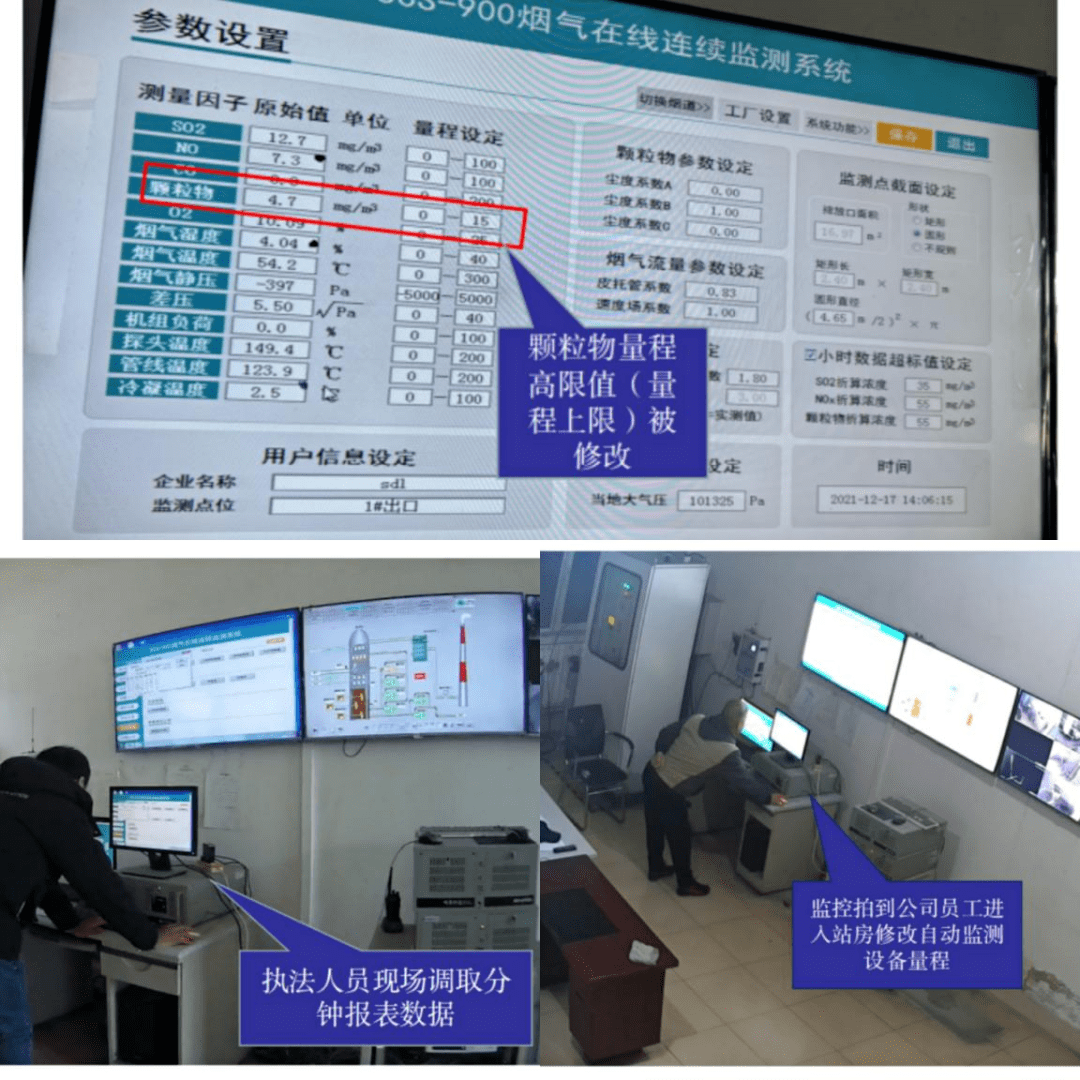 现场检查时,该公司两台燃煤锅炉及配套的污染防治设施正在运行。执法人员现场调取该公司废气自动监测设备相关参数,发现在2021年12月7日至2021年12月16日期间颗粒物量程上限有修改痕迹。