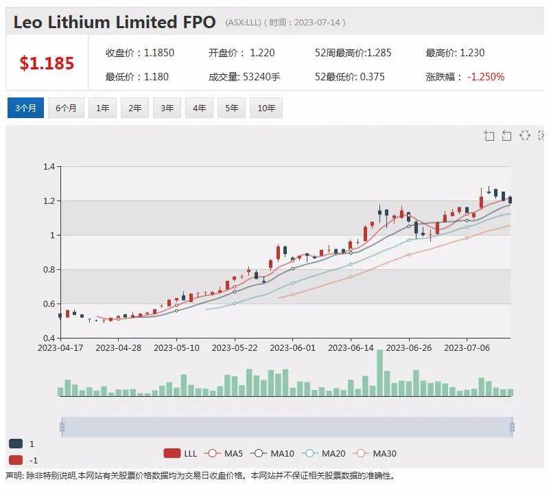 受该公告影响,Leo Lithium股价周五早盘上涨。10:45成交价为1.205澳元,上扬0.005澳元,涨幅0.42%。该股近一年的出资回报率为212.99%。