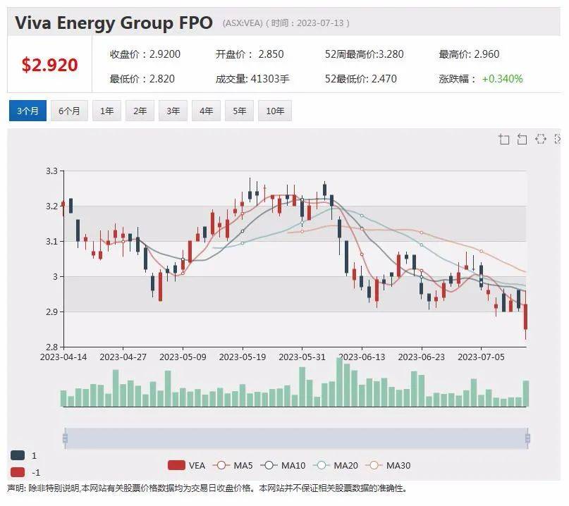 受该公告影响,Viva股价周四早盘上涨。11:35成交价为2.935澳元,上扬0.025澳元,涨幅0.86%。该股近一年的出资回报率为7.51%。