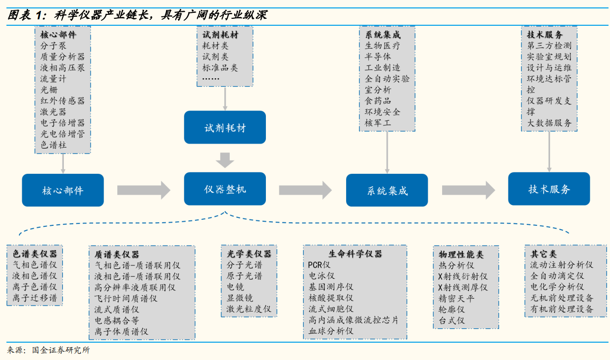 科学仪器行业本身体量不大,但却对下游多数行业的发展起到很重要的影响,缺少相关科学仪器,几乎所有科学研究将没有办法进行。因此,科学仪器的每一次进步往往能够带动下游若干个细致划分领域的发展。