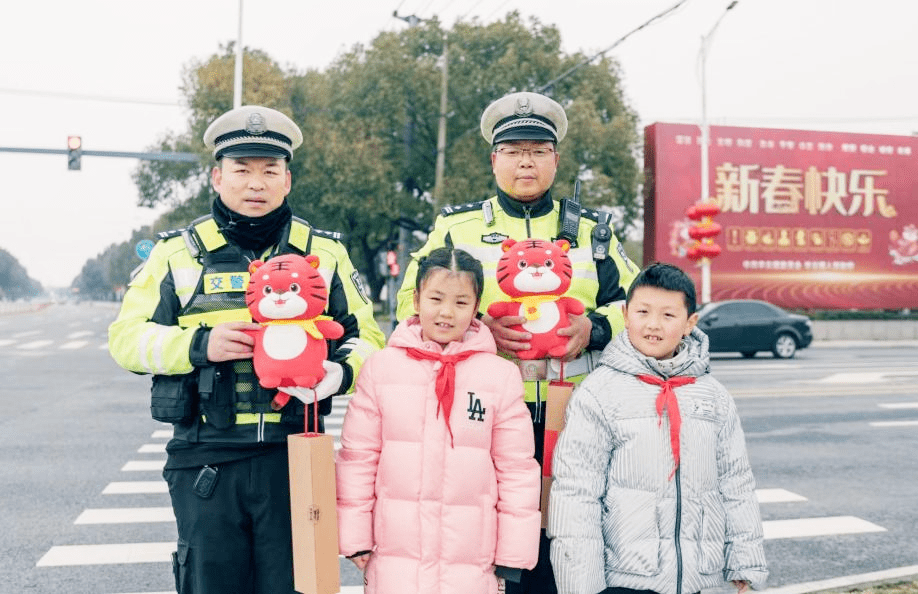 2022年除夕夜,无锡市锡山试验小学的少先队员走进派出所、消防中队、人民医院,以一个个规范的队礼,问候最美“值守前锋”。(陈婷婷 摄)