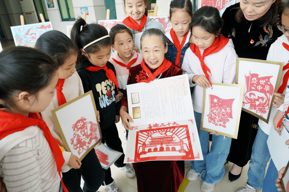 非遗剪纸忆初心,赤色传承颂党恩。图片选用中心构图法,视觉中心杰出,人物神态天然。同学们围绕在非遗剪纸文明传人的身边,赤色剪纸与红领巾构成奇妙照应,中华优异民间传统文明也在无声中滋润每一位队员的“心田”。