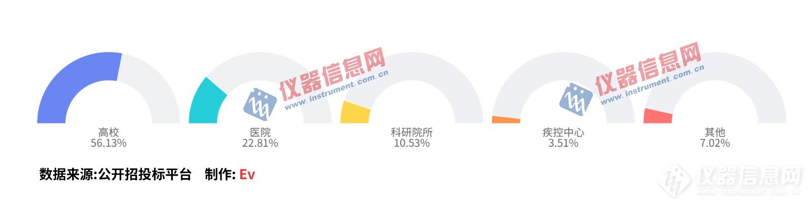 高校占据半壁江山,价格分布相对均衡本次中标统计主要为高校、科研院所和医院等政府采购平台信息汇总,不涉及生物制药企业订单。整体看来,国内高校仍是采购主力,2024年来自国内高校的高内涵细胞成像分析系统采购占比高达56.13%,这中间还包括北京大学、四川大学、中山大学、吉林大学、厦门大学、首都医科大学等国内知名院校。近年来,随着高内涵成像技术在干细胞/类器官、癌症研究、神经科学、免疫学、病毒学等领域的应用愈发成熟,医院成为了除高校外最大的采购单位,2024年高内涵仪器采购占比达22.81%。其次,科研院所与疾控中心采购占比分别为10.53和3.51%。